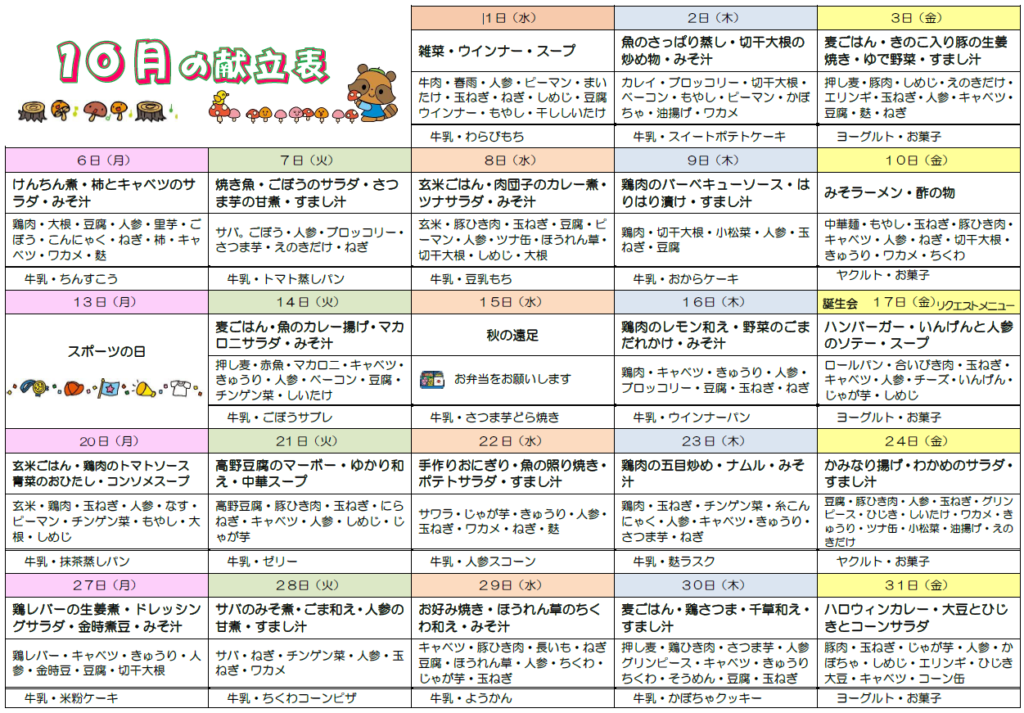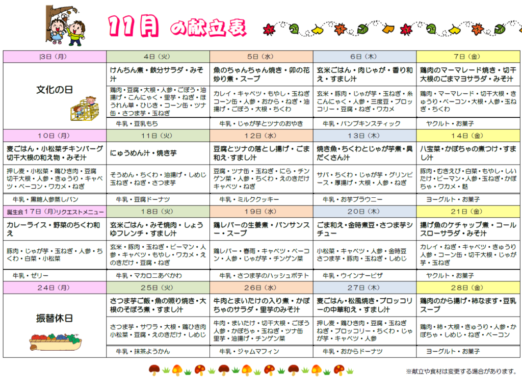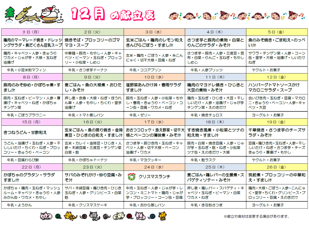 • 給食の献立表