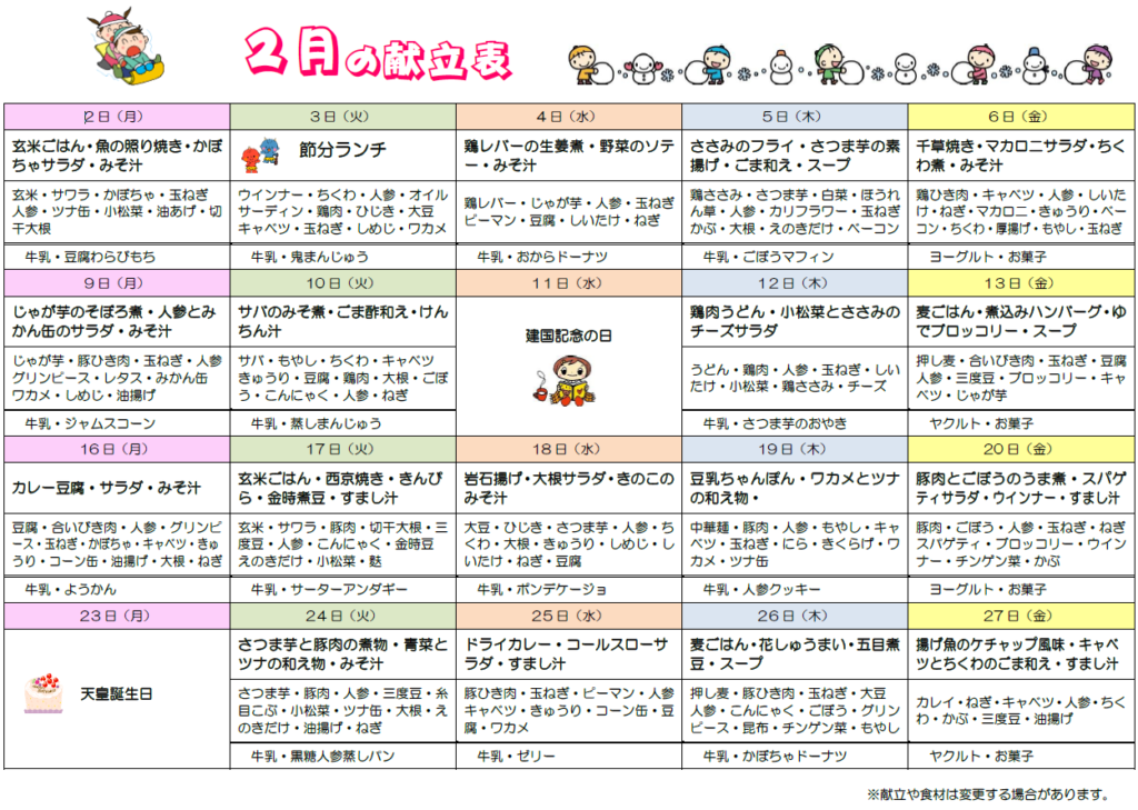 • 2月の園だより、献立表、食育だよりをアップしました