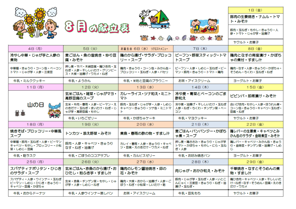 給食の献立表